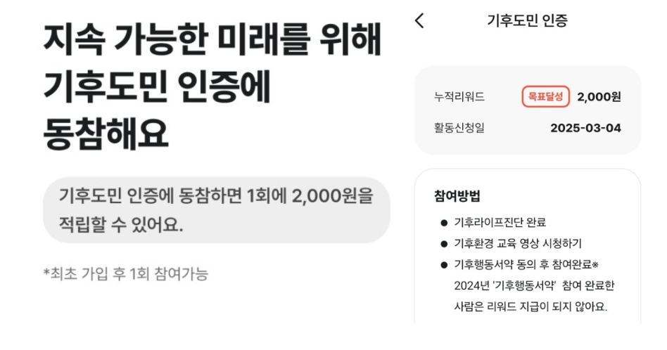 - 방법: ‘기후행동포인트’ 앱 설치하고,